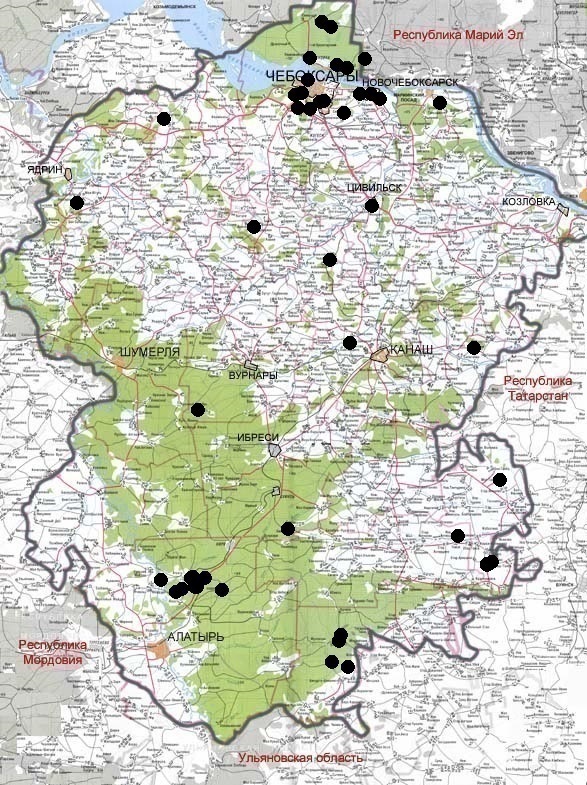 Распространение в Чувашской Республике.