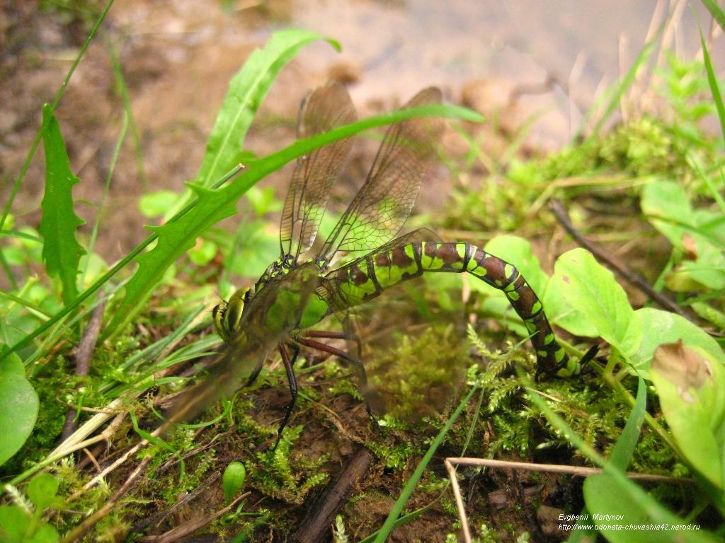 Также нижняя фотография. Самец синего коромысла Aeschna cyanea (Müller, 1764). Лесной пруд в дубраве (смешанный дубово-широколиственный лес), между Садовым товариществом “Лесная поляна” и железнодорожной станцией “Чебоксары-2” (южная окраина города Чебоксары), Чувашия. 4 августа 2009 года.