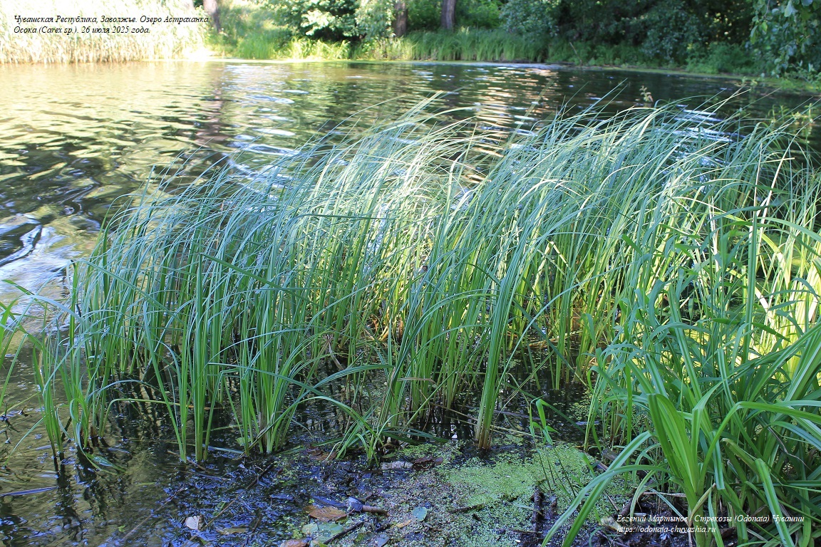 Также, вдоль берега Астраханки произрастает осока (Carex sp.).