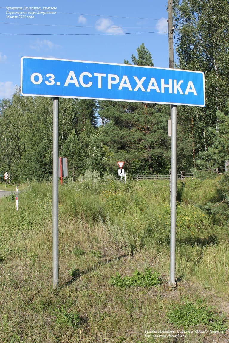 Озеро Астраханка. Архивные снимки от 24 июля 2008 года. Фото 1. Фото 2. Фото 3. P.S. В течение многих лет, минувших с момента первых фотографий, ландшафт вблизи озера заметно преобразился. В частности, просматривавшееся в те годы с автомобильной дороги озеро сейчас уже трудно увидеть - от шоссе Астраханку укрывают изрядно выросшие ивы.