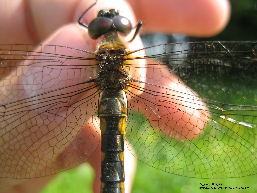 Также три нижние фотографии. Самки бабки желтопятнистой Somatochlora flavomaculata (Vander Linden, 1825). На верхнем, и двух нижних снимках - самка, пойманная на опушке лиственного леса северо-северо-восточнее Чебоксарской ГЭС (к югу от деревни Уржумка), Заволжье (пограничье республик Чувашии и Марий-Эл). 14 Июня 2009 года. На четвертом снимке - молодая самка на травинке. Луга рядом с БОС (“Биологические очистные сооружения” Министерства строительства, архитектуры и жилищно-коммунального хозяйства Чувашской Республики), северо-восточная окраина города Новочебоксарск. 15 Июня 2022 года. Фотография Олега Владимировича Глушенкова.