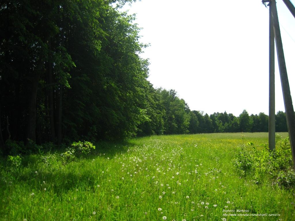 Опушка леса, где была отмечена стрекоза. Стоит отметить, что недалеко, в лесу, расположено травяное болото. 14 Июня 2009 года.