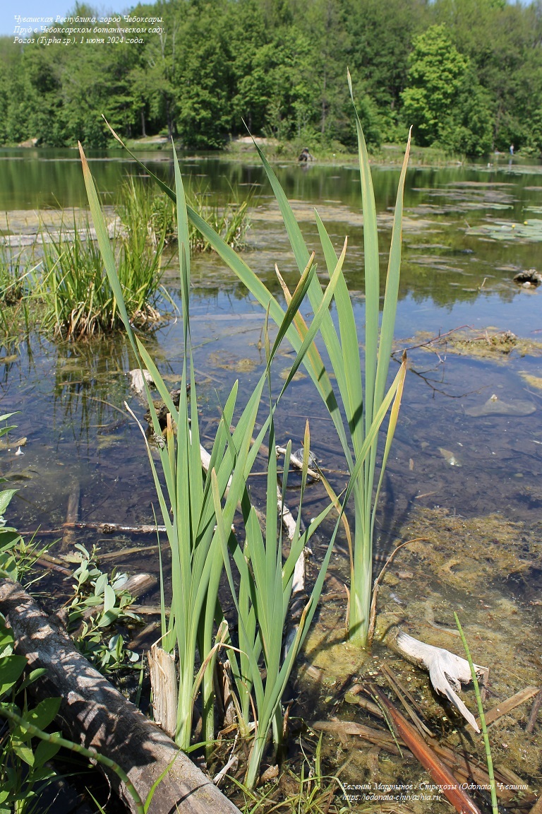 Также вдоль берега пруда можно повстречать рогоз (Typha sp.).
