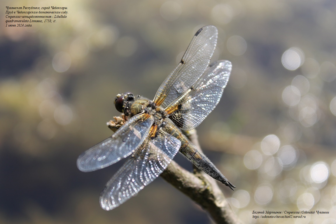 Стрекоза четырехпятнистая – Libellula quadrimaculata Linnaeus, 1758. Отмечена в 2007, 2008 и 2024 годах. Обычна.